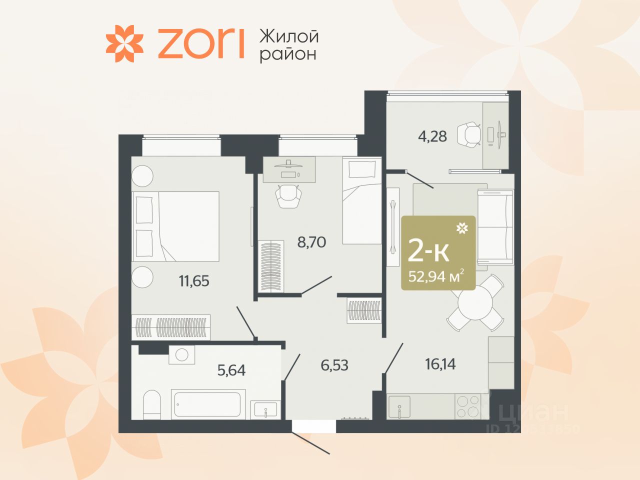 Общая площадь52,94 м2