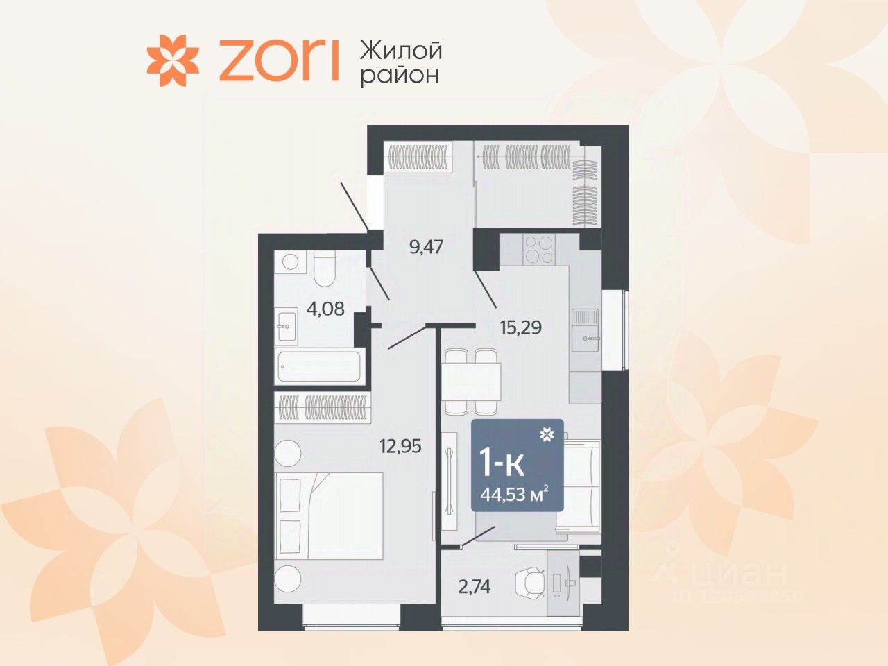 Общая площадь44,53 м2