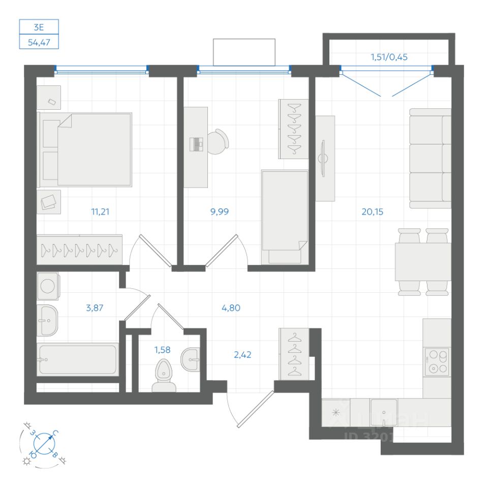 Квартиры комфорт-класса площадью до 77 кв.м с чистовой отделкой.