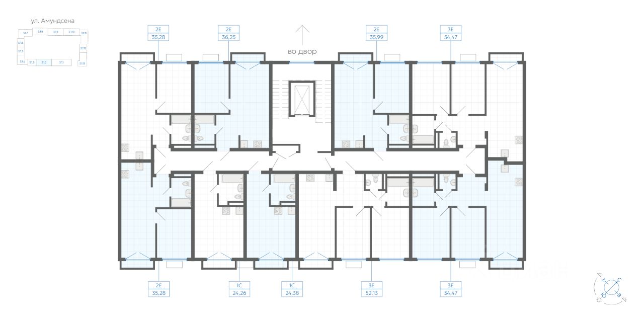 Квартиры комфорт-класса площадью до 77 кв.м с чистовой отделкой. Стильные и уютные холлы с помещениями для детских колясок и велосипедов.