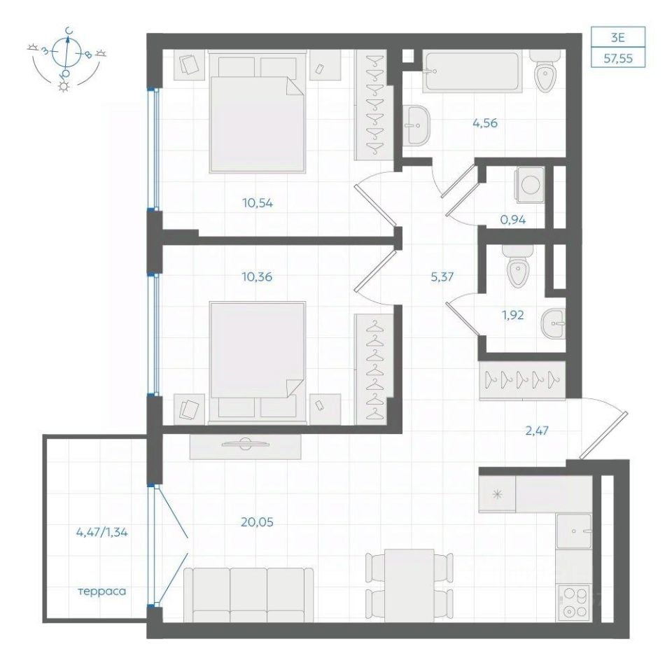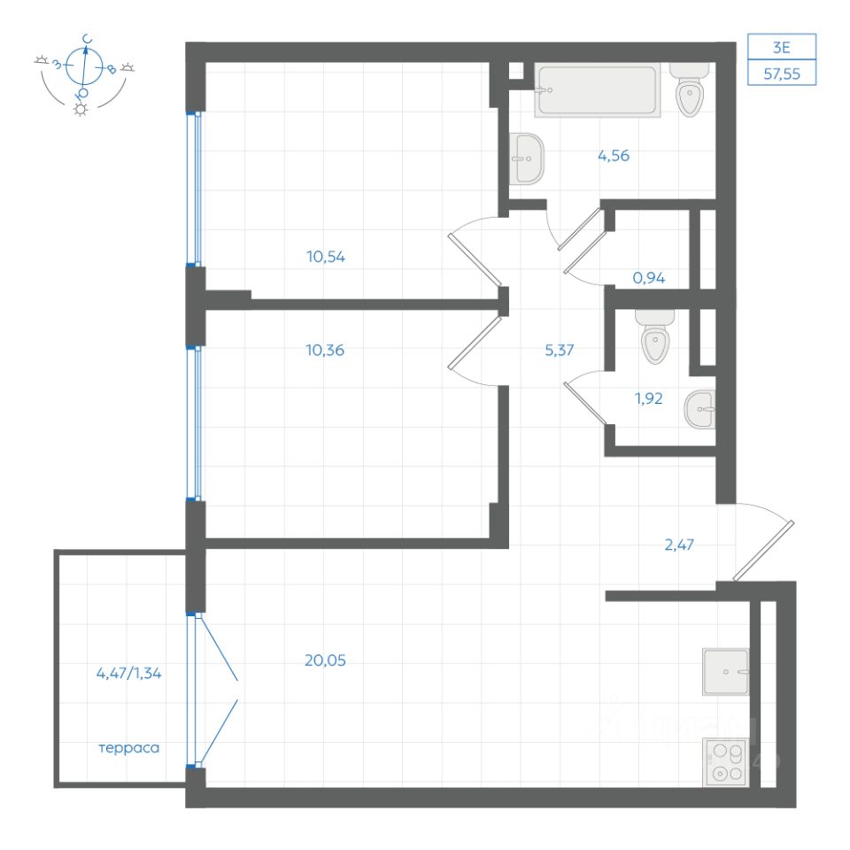 Квартиры комфорт-класса площадью до 77 кв.м с чистовой отделкой.