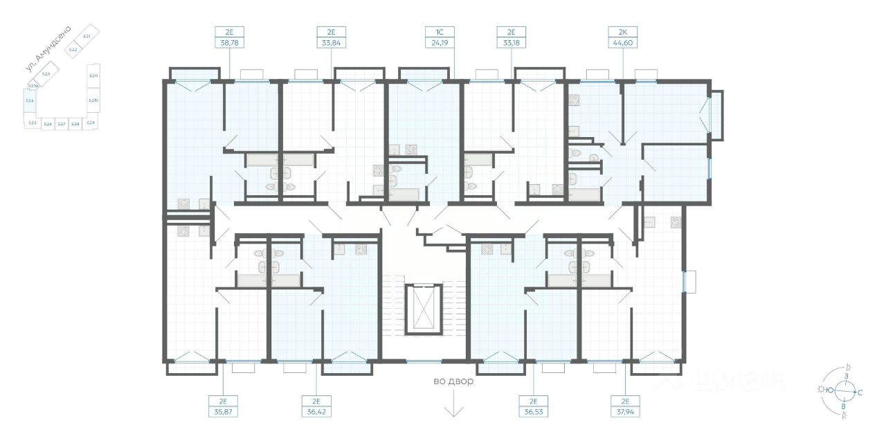 Квартиры комфорт-класса площадью до 77 кв.м с чистовой отделкой. Стильные и уютные холлы с помещениями для детских колясок и велосипедов.