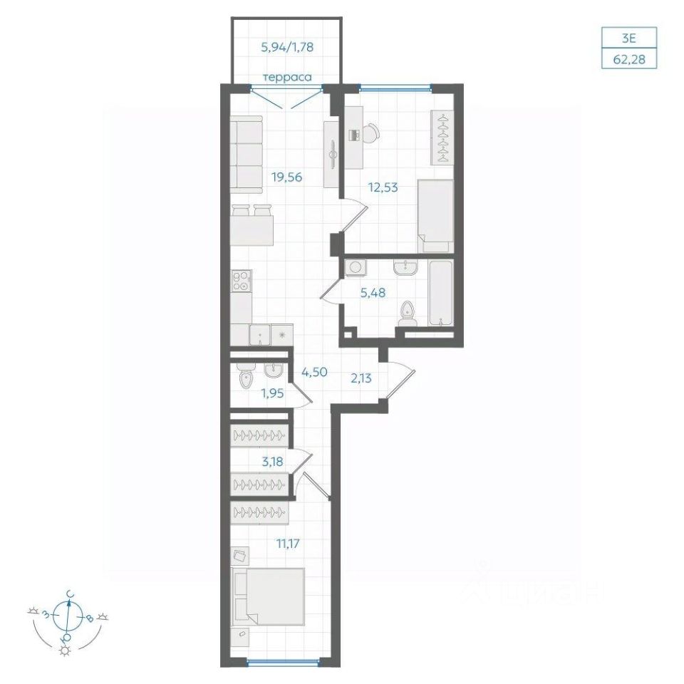 Квартиры комфорт-класса площадью до 77 кв.м с чистовой отделкой.