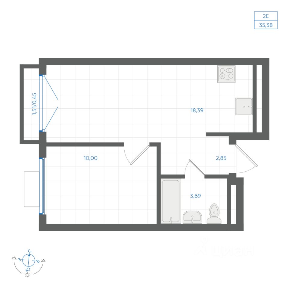 Квартиры комфорт-класса площадью до 77 кв.м с чистовой отделкой.