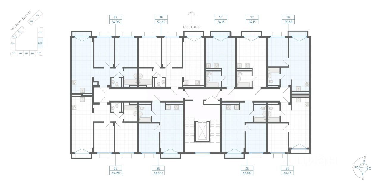 Квартиры комфорт-класса площадью до 77 кв.м с чистовой отделкой. Стильные и уютные холлы с помещениями для детских колясок и велосипедов.
