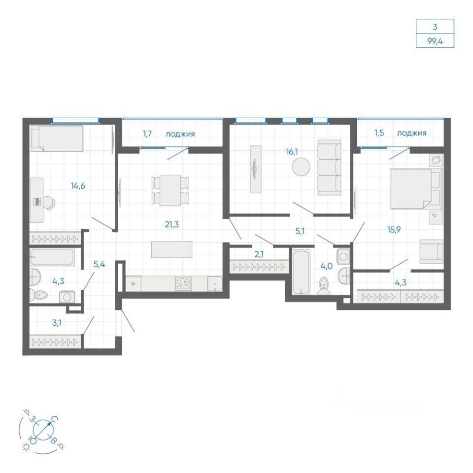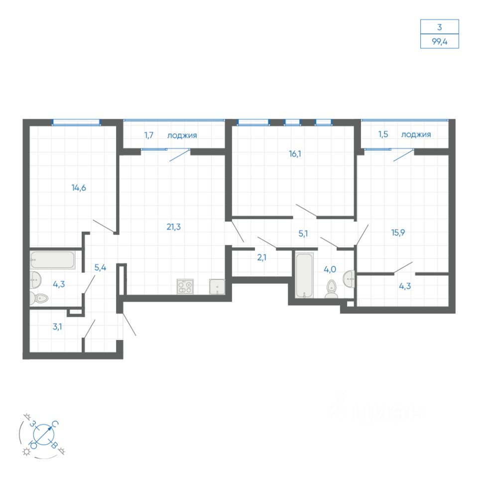 продам 3-к, Академика Парина, 12/614 600 000 ₽