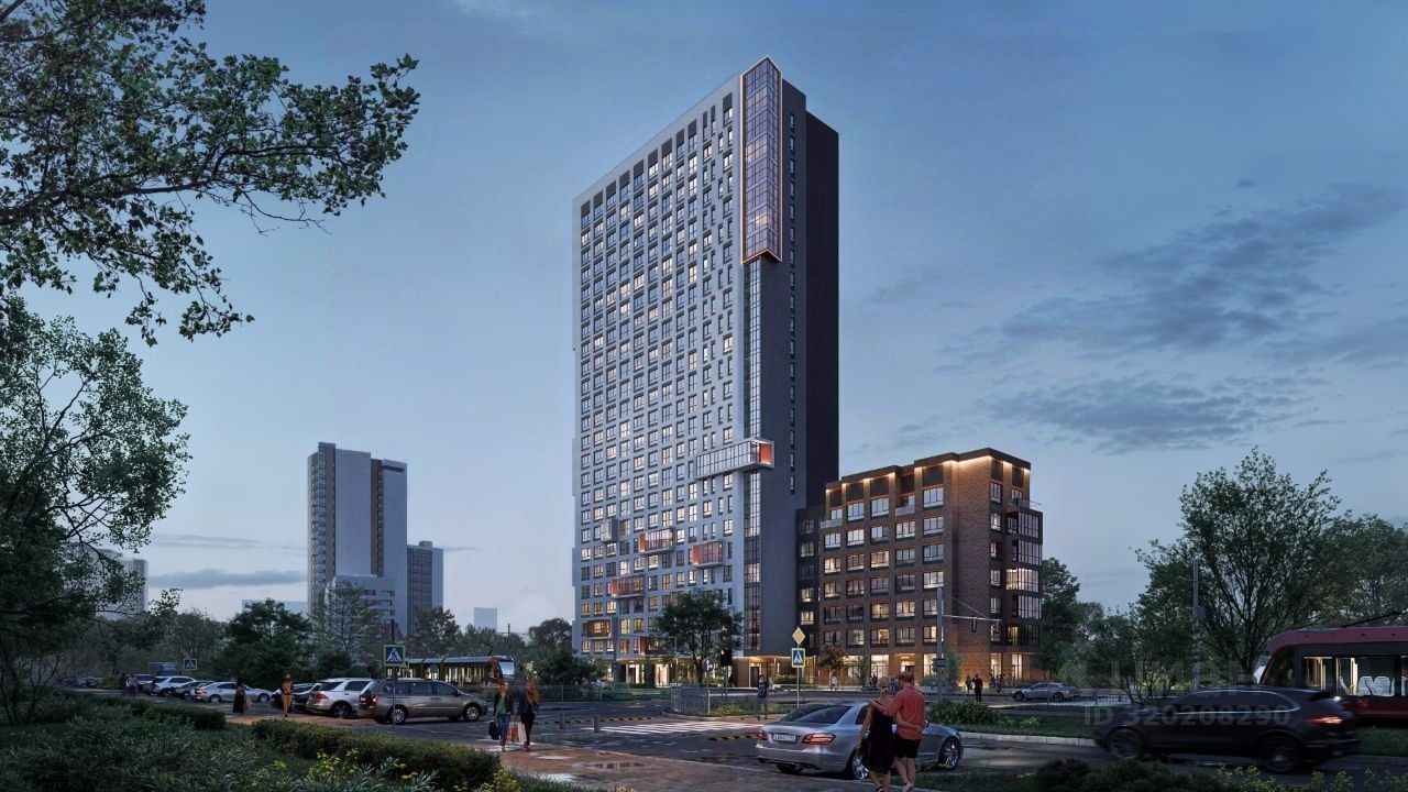 Комплекс располагается условно в центре нового фронта застройки улицы Викулова. Посадка домов сформирована параллельно улице, таким образом создавая закрытое приватное пространство от оживленной магистральной улицы. Архитектура и фасадные материалы откликаются на контекст, вносят в него новое, не доминируя. 7-ми этажная секция сдвигается вглубь участка, отделяясь от 25 - этажной секции. Это сомасштабный человеку объем с отделкой под клинкерный кирпич, с сочетанием разной кладки, что придает комплексу строгий и элегантный вид. Верхний этаж подрезается в местах лоджий, формируя силуэт. 25 - этажная секция - это наслоение двух объемов. Каждый фасад имеет свой ''взгляд'' на город. В торцах башни появляются лоджии-призмы, объединенные в 2-3-7 этажей смещены относительно друг друга. Этот прием помогает акцентировать торцы с дальних ракурсов, при этом основная фасадная сетка остается спокойной, постепенно растягиваясь к верхним этажам. Со 2 по 8 этажи на белой плоскости фасада появляются эркеры, создавая аккуратный рельеф.
