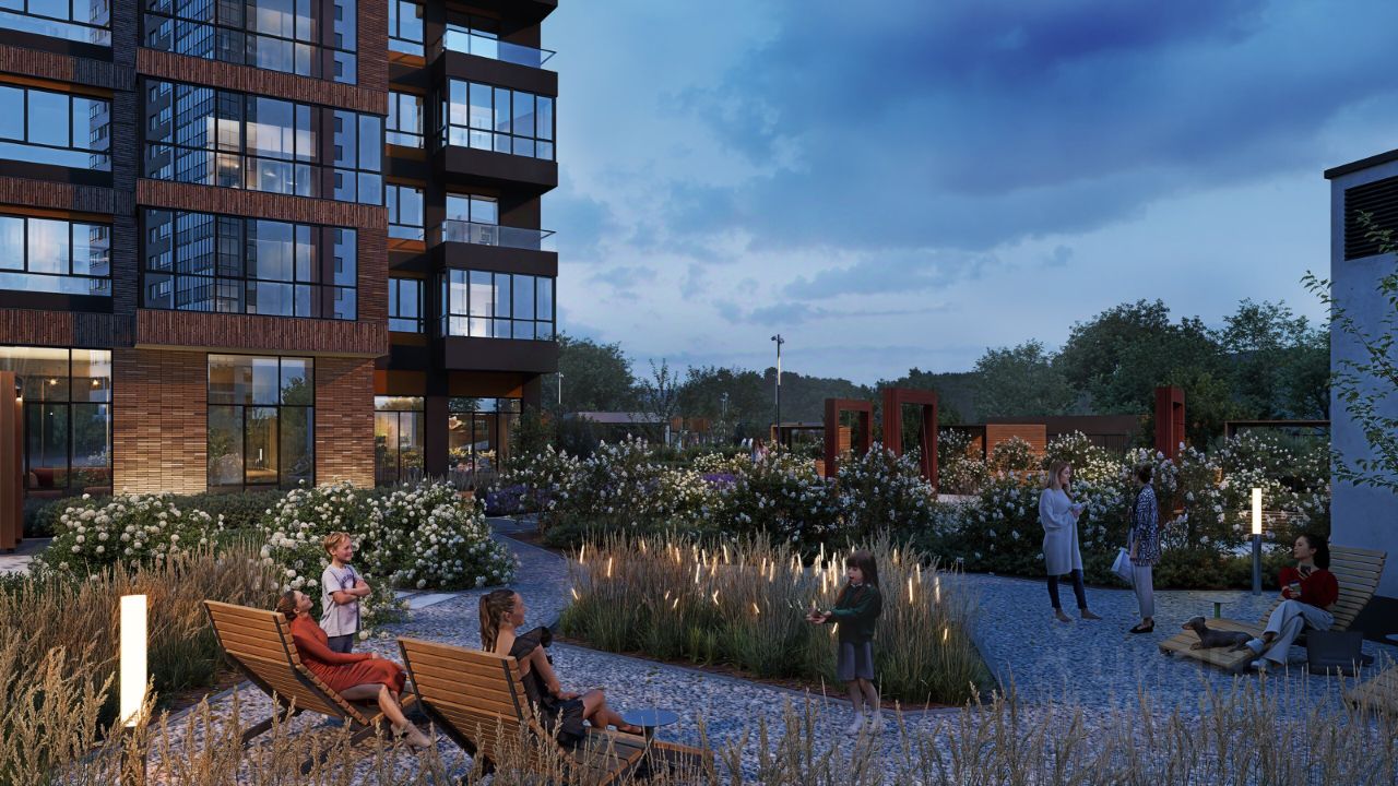 Комплекс располагается условно в центре нового фронта застройки улицы Викулова. Посадка домов сформирована параллельно улице, таким образом создавая закрытое приватное пространство от оживленной магистральной улицы. Архитектура и фасадные материалы откликаются на контекст, вносят в него новое, не доминируя. 7-ми этажная секция сдвигается вглубь участка, отделяясь от 25 - этажной секции. Это сомасштабный человеку объем с отделкой под клинкерный кирпич, с сочетанием разной кладки, что придает комплексу строгий и элегантный вид. Верхний этаж подрезается в местах лоджий, формируя силуэт. 25 - этажная секция - это наслоение двух объемов. Каждый фасад имеет свой ''взгляд'' на город. В торцах башни появляются лоджии-призмы, объединенные в 2-3-7 этажей смещены относительно друг друга.