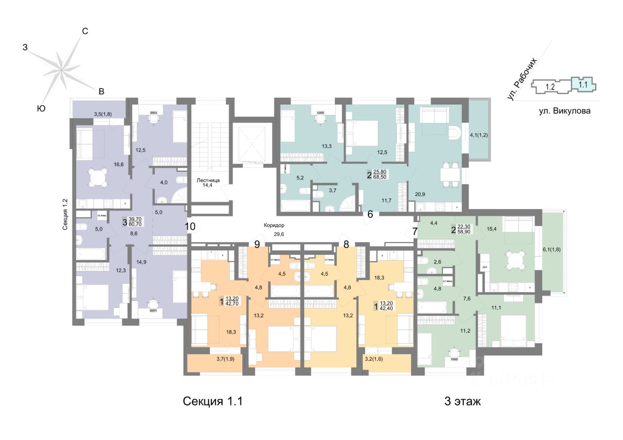 Общая площадь58,9 м2