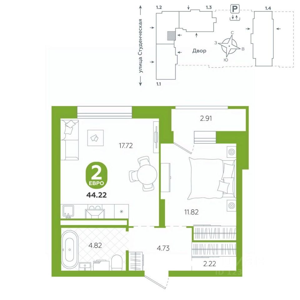Квартира разработана с акцентом на удобство и практичность. Спальня создает атмосферу для спокойного отдыха, а ванная комната оснащена всеми необходимыми удобствами. Благодаря большим окнам все помещения хорошо освещены и идеально подходят для расстановки мебели. Планировка кухни позволяет эффективно зонировать пространство.