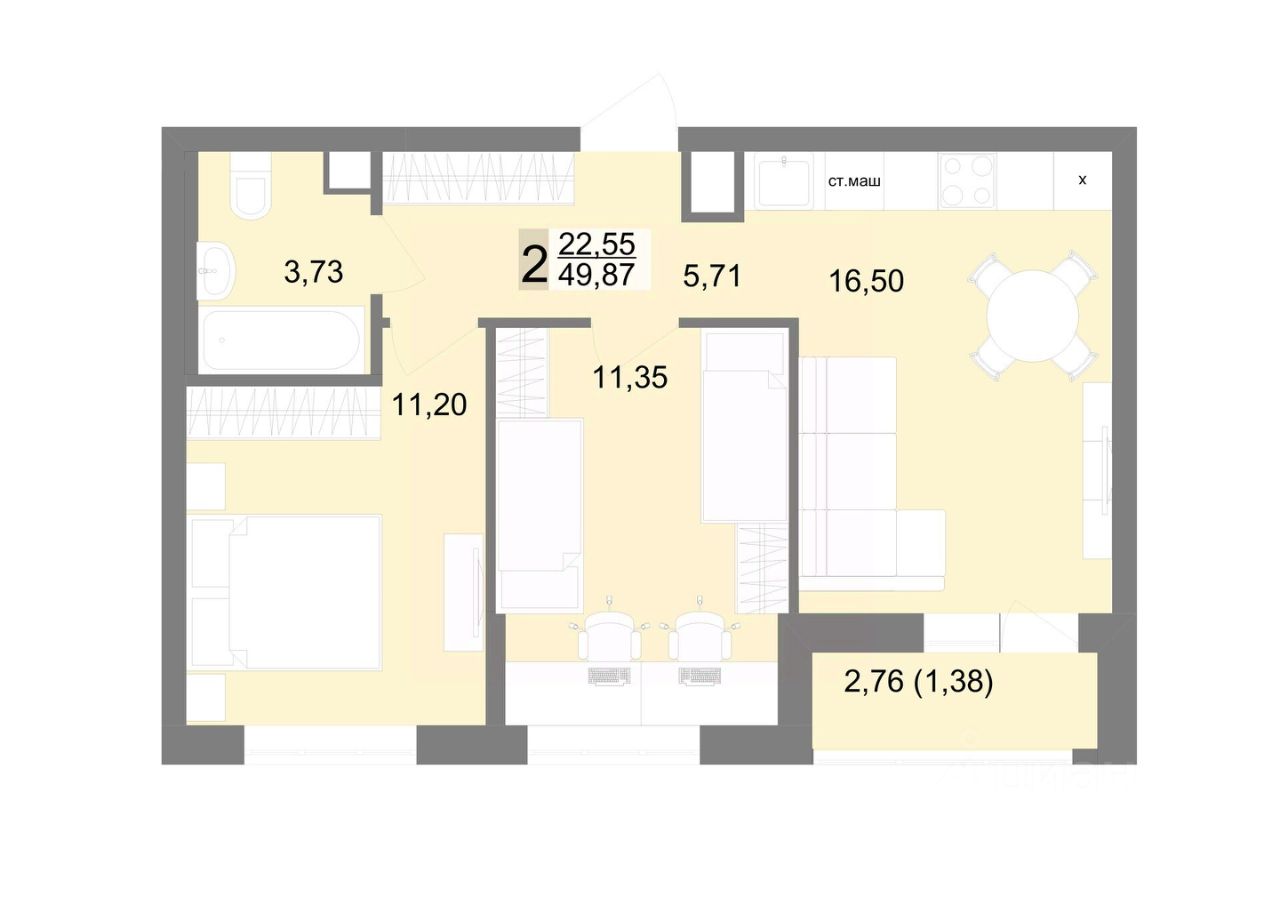 Продаётся 2-комнатная квартира в строящемся доме (Дом 1В), срок сдачи: III-кв. 2026, общей площадью 49.87 кв.м., на 3 этаже. с Квартал расположен между двумя микрорайонами - Академический и Широкая речка на пересечении улиц Тенистая-Краснолесья-Соболева. Вы сможете пользоваться преимуществами сразу двух районов! 30 минут до центра города на машине, 9 минут до Объездной дороги, если хочется выехать на природу. В шаговой доступности есть несколько школ, детских садов и спортивных секций. А еще один детский сад на 350 мест уже построен на территории самого квартала. Большой двор, разделен на рекреационные зоны. Есть площадки для малышей и подростков с безопасным покрытием, зоны ворк-аута для предпочитающих здоровый образ жизни, прогулочные дорожки для бесед с друзьями или соседями. Безопасность - важное преимущество эко-квартала. Вход на территорию осуществляется с помощью Face ID или через мобильное приложение. Входные группы оформлены в соответствии с архитектурной концепцией всего квартала, ведь всегда приятно заходить в красиво оформленный подъезд. На всех этажах предусмотрена навигационная система, чтобы ваши гости точно не заблудились! В третьей очереди квартала ''На Тенистой'' есть несколько уникальных планировок, в том числе с мастер-спальнями, с открытыми балконами, с панорамным остеклением лоджии. А чтобы вы точно подобрали то, что по душе, в продаже представлены все виды комнатности - от студий до трехкомнатных. Мы за быстрый переезд, поэтому все квартиры сдаются с отделкой ''под ключ'': поклеены обои под покраску, постелен ламинат, установлены окна, обустроен санузел, поставлены счетчики, проведена разводка. До встречи на Тенистой. Здесь всегда хорошо! Окончание строительства: III квартал 2026г.