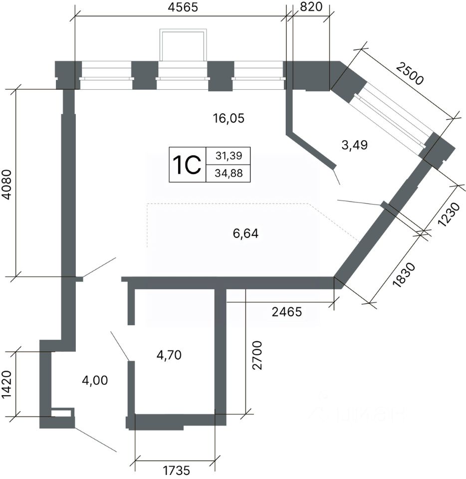 Общая площадь34,7 м2