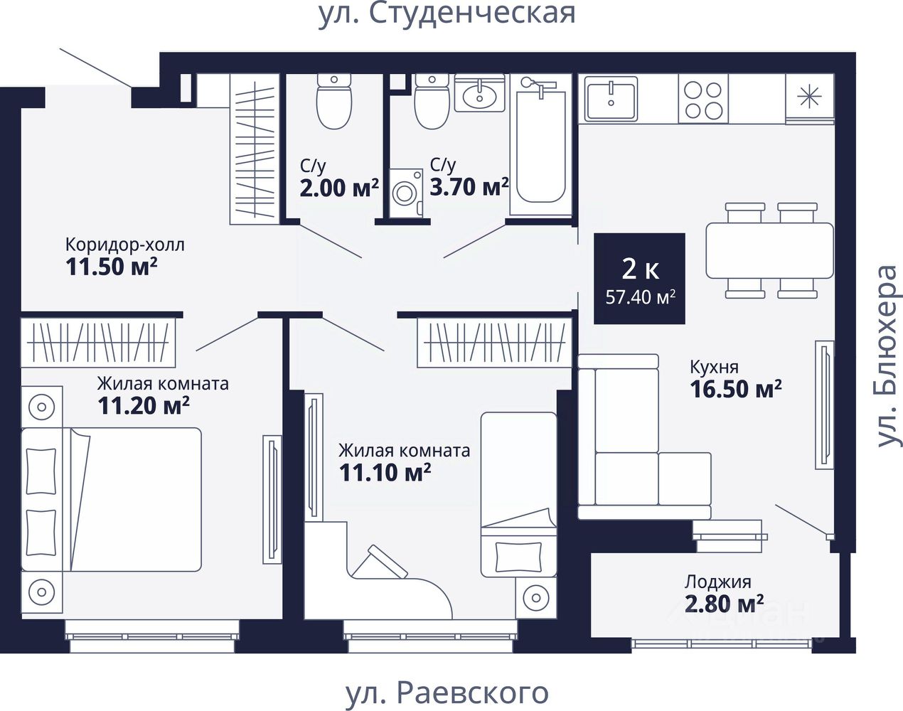 продам 2-к, Раевского, 18/511 300 000 ₽