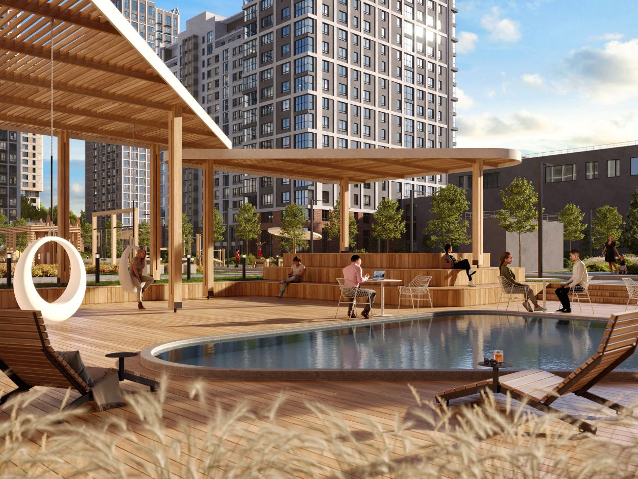 ''Парк Столиц'' — это жилая экосистема бизнес-класса: десять секций переменной этажности с закрытой территорией, уникальное дворовое пространство с ручьем, собственная УК, доступность в коммерческие помещения прямо из квартиры.