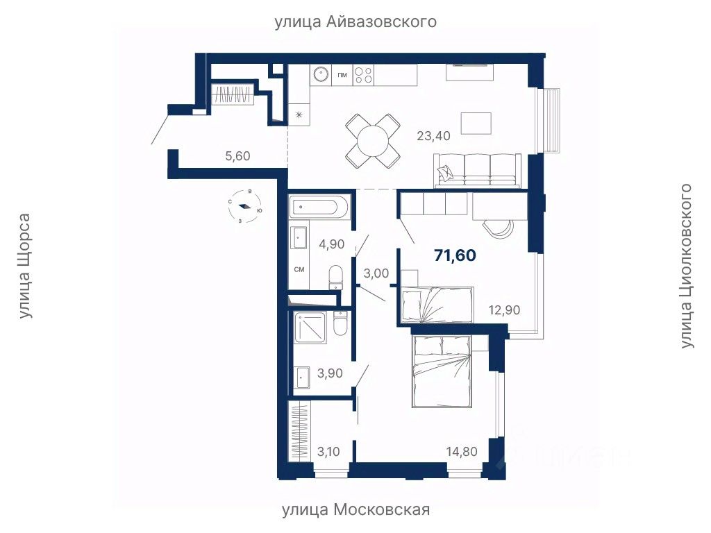 Комплекс находится в квартале улиц Московская — Щорса — Айвазовского — Циолковского.