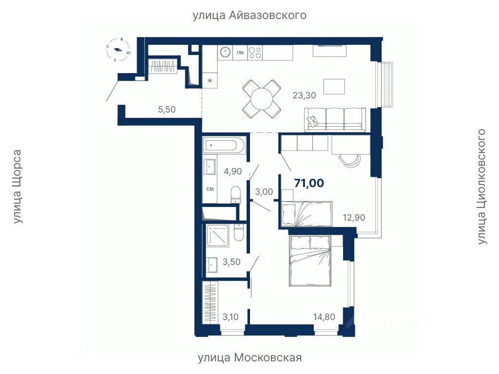 Комплекс находится в квартале улиц Московская — Щорса — Айвазовского — Циолковского.