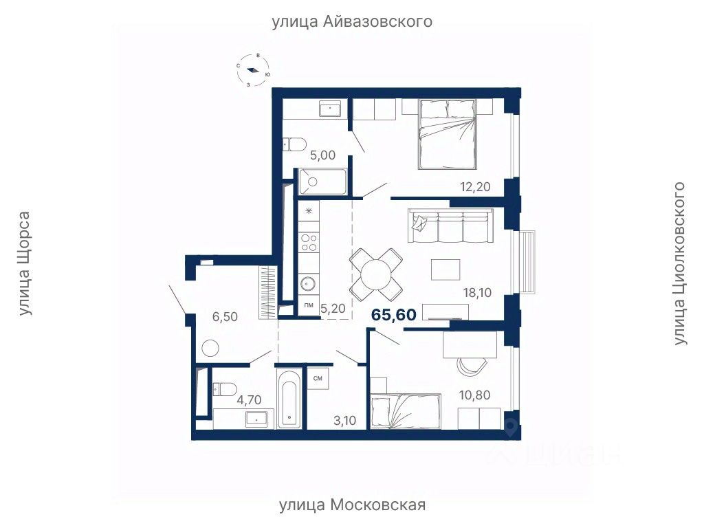 Комплекс находится в квартале улиц Московская — Щорса — Айвазовского — Циолковского.