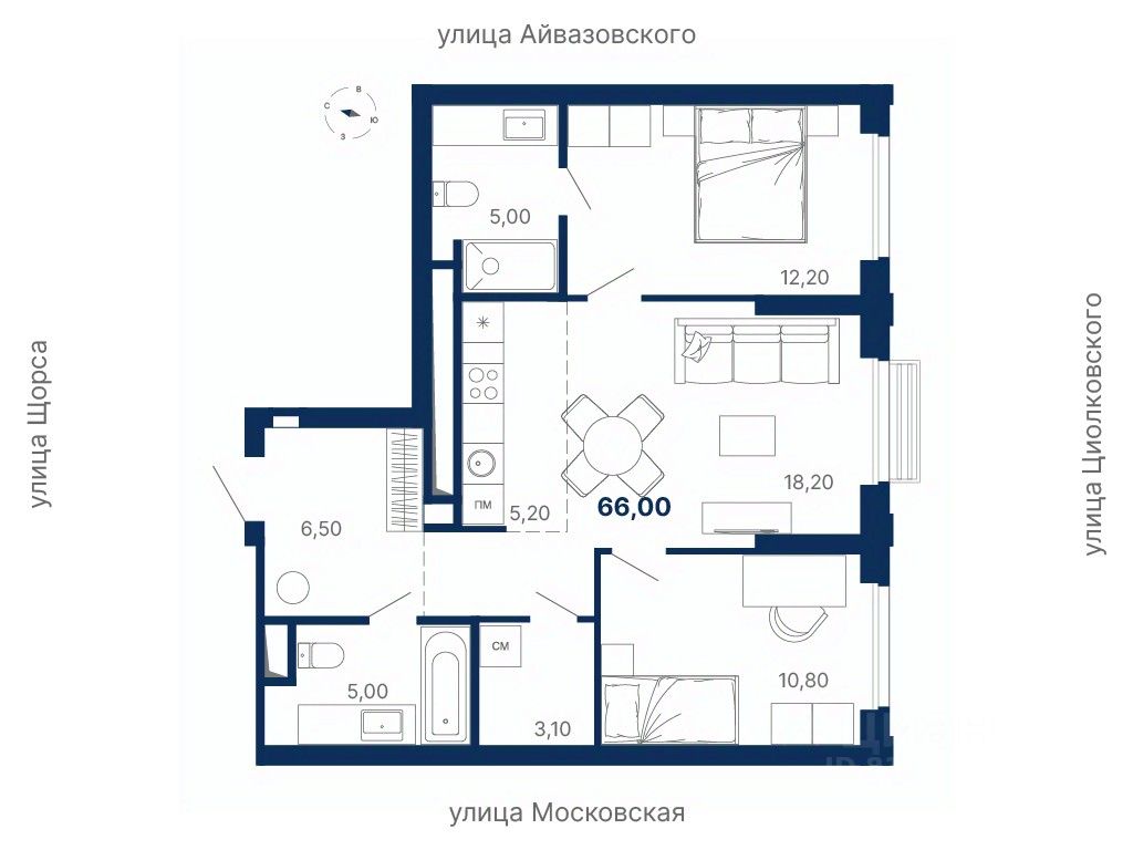 Комплекс находится в квартале улиц Московская — Щорса — Айвазовского — Циолковского.