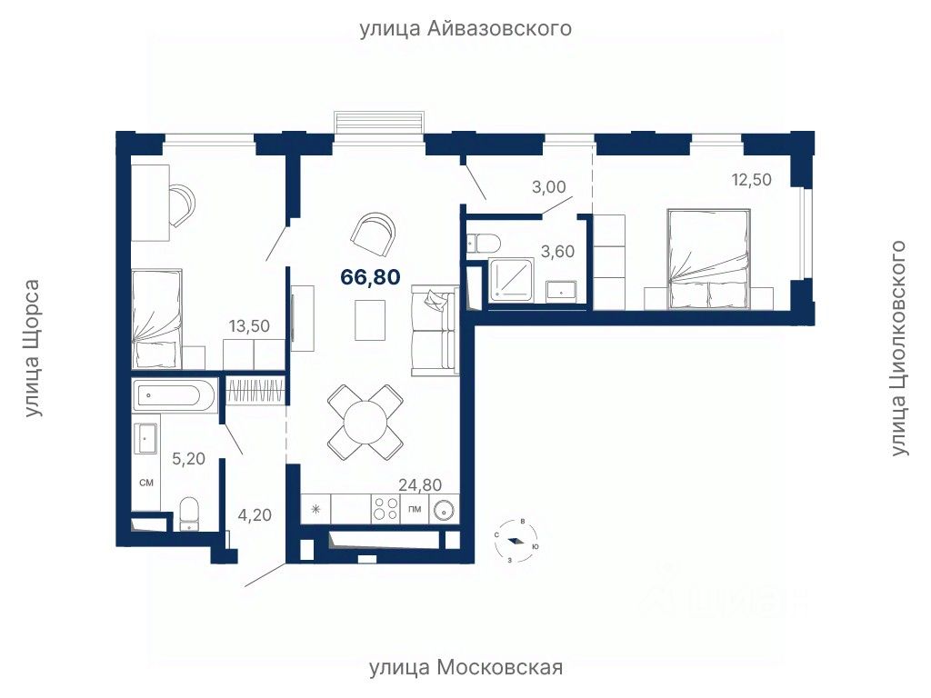 продам 2-к, Московская, 249/3 стр.15 799 165 ₽
