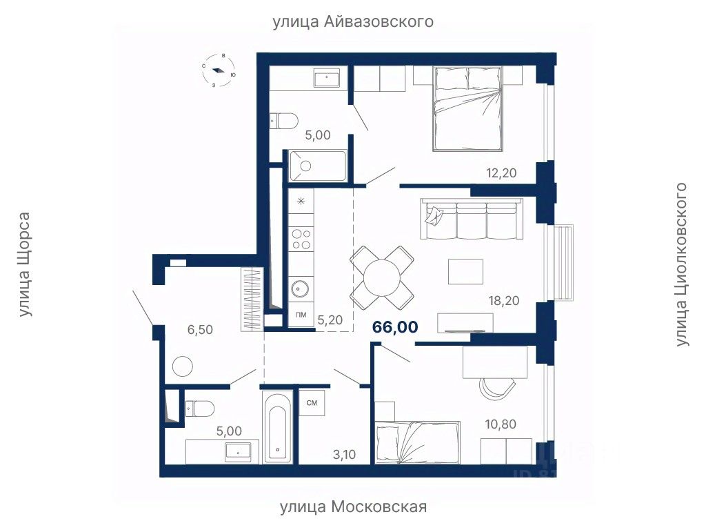 Комплекс находится в квартале улиц Московская — Щорса — Айвазовского — Циолковского.