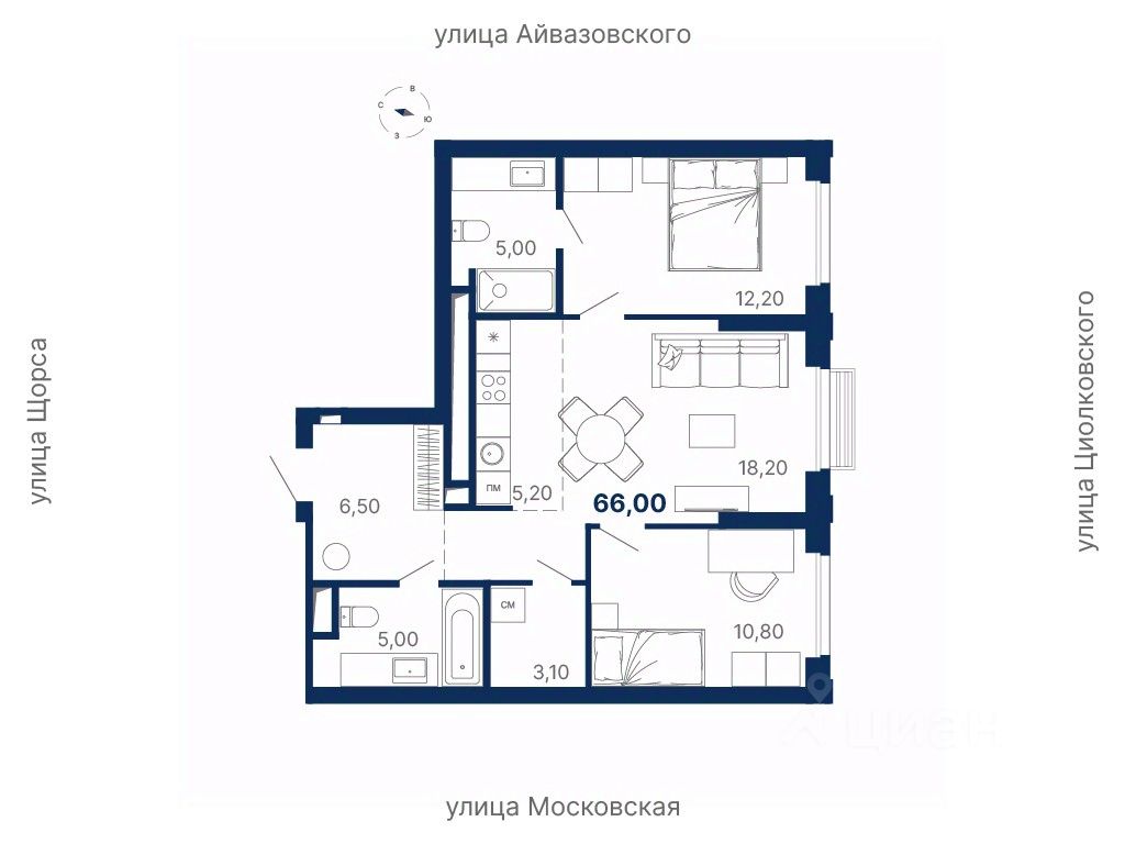 Комплекс находится в квартале улиц Московская — Щорса — Айвазовского — Циолковского.