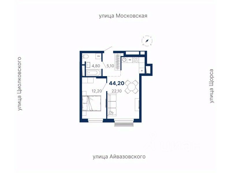 продам 1-к, Московская, гп 410 173 727 ₽