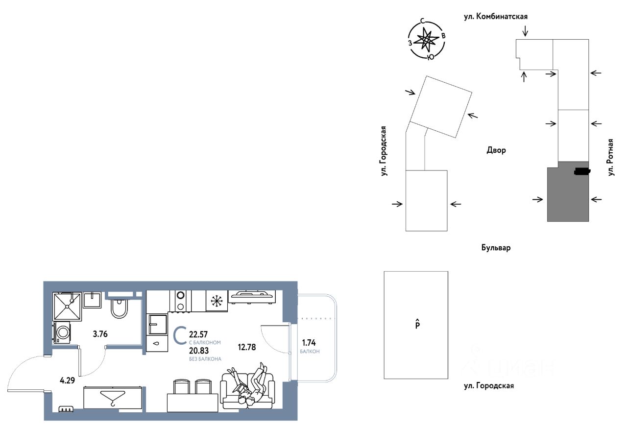 Продаётся студия в строящемся доме (Дом 1), срок сдачи: II-кв. 2027, общей площадью 22.57 кв.м., на 4 этаже. Новый жилой комплекс ''Уральский сад'' от застройщика ''ГК Страна Девелопмент'' расположен по адресу: г. Екатеринбург, посёлок Совхозный, Комбинатская улица.