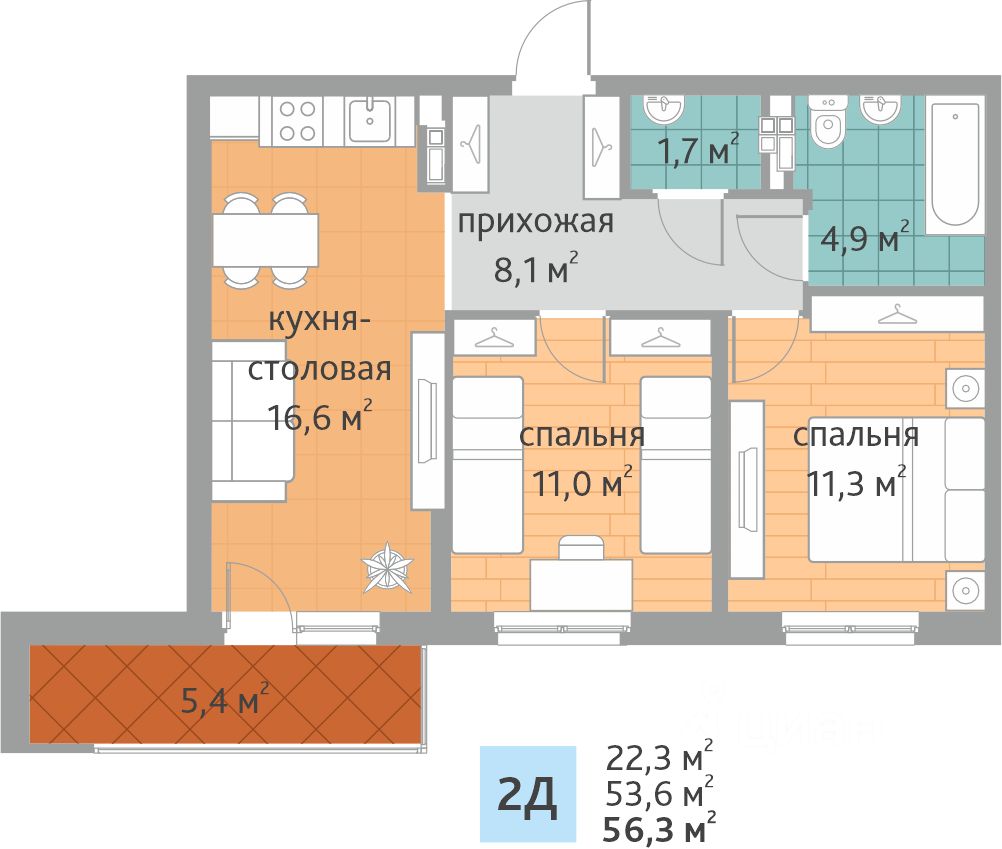 продам 2-к, Шекспира, 38/1 стр.8 571 000 ₽