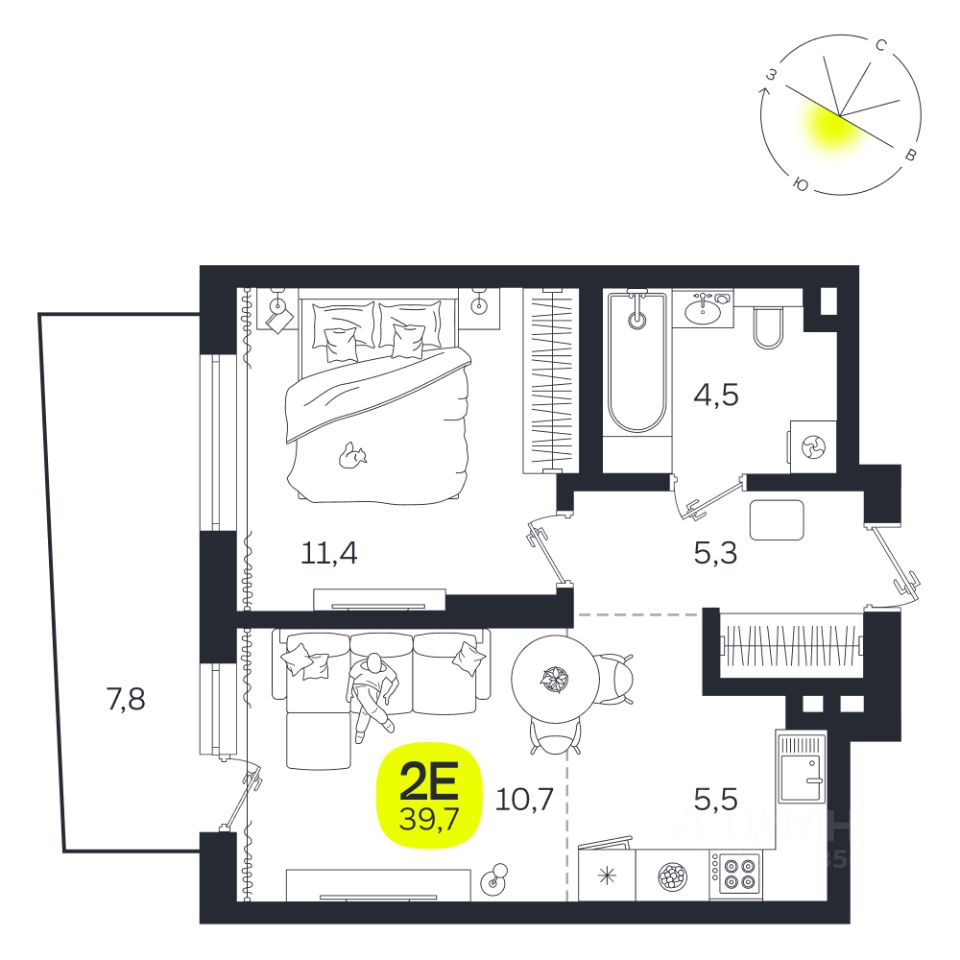 Общая площадь39,7 м2