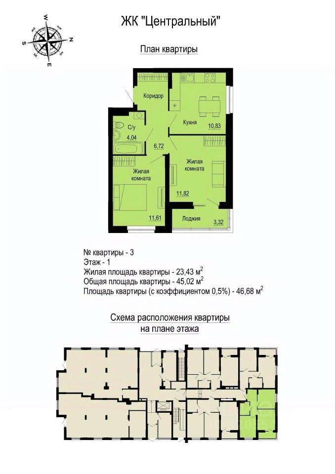 Общая площадь46,68 м2