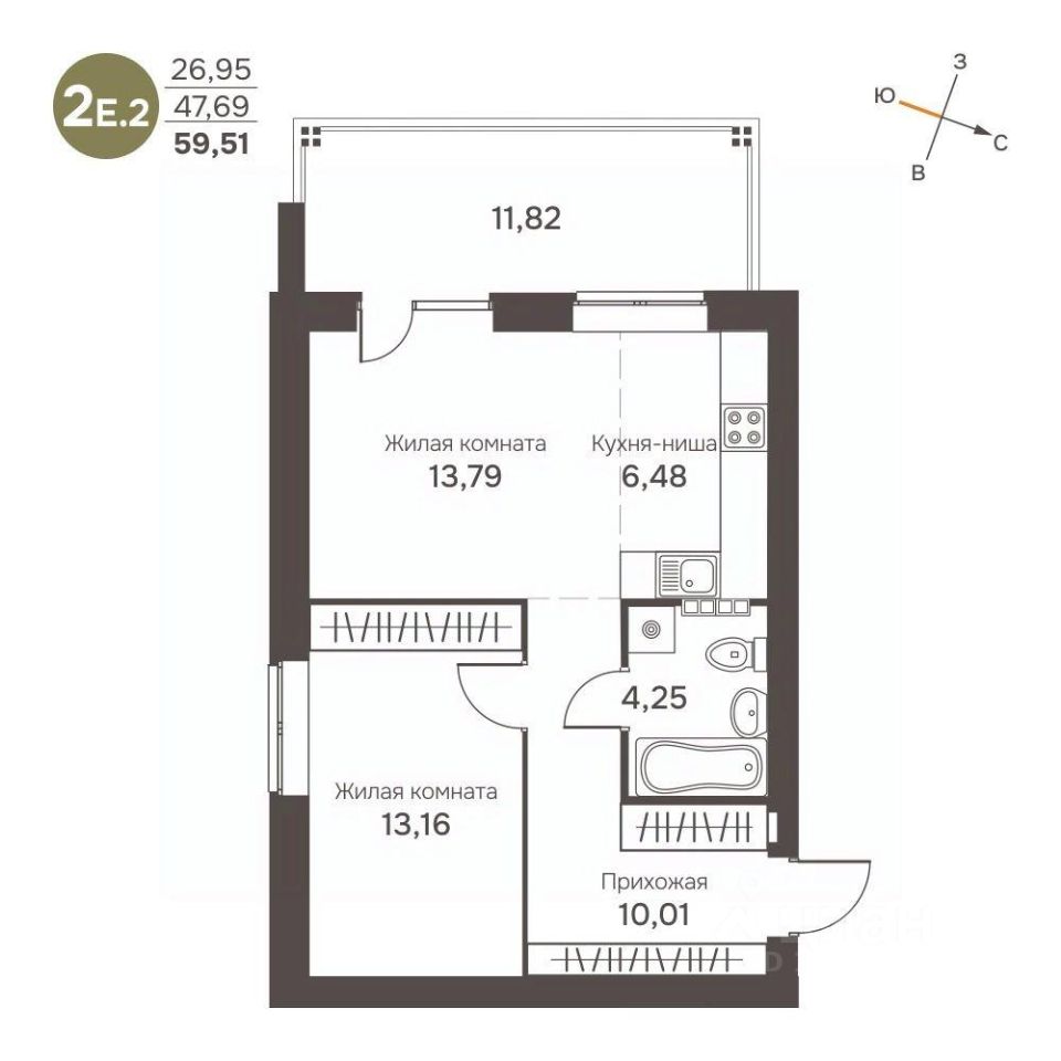 продам 2-к, Северные ворота, 2 ст19 541 486 ₽