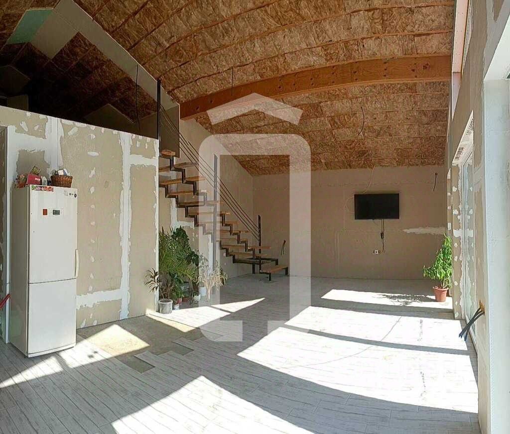Кухня-гостинная со вторым светом высота 5,5 м с выходом на терассу, с панорамными окнами во всю стену видом на закат. Пять отдельных жилых комнат, гардеробная, постирочная, два санузла, баня, душевая, кладовка.