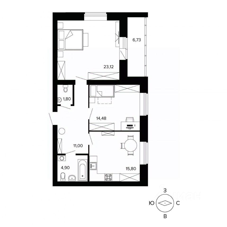 Общая площадь78 м2