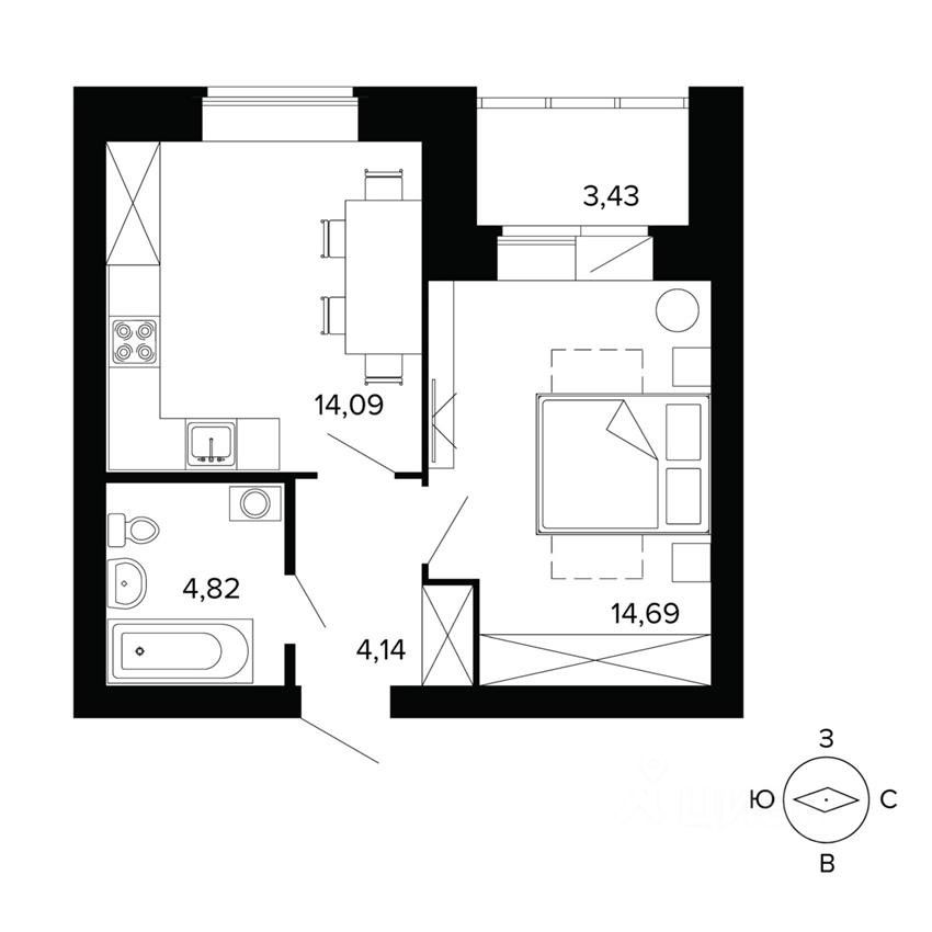Общая площадь41,2 м2