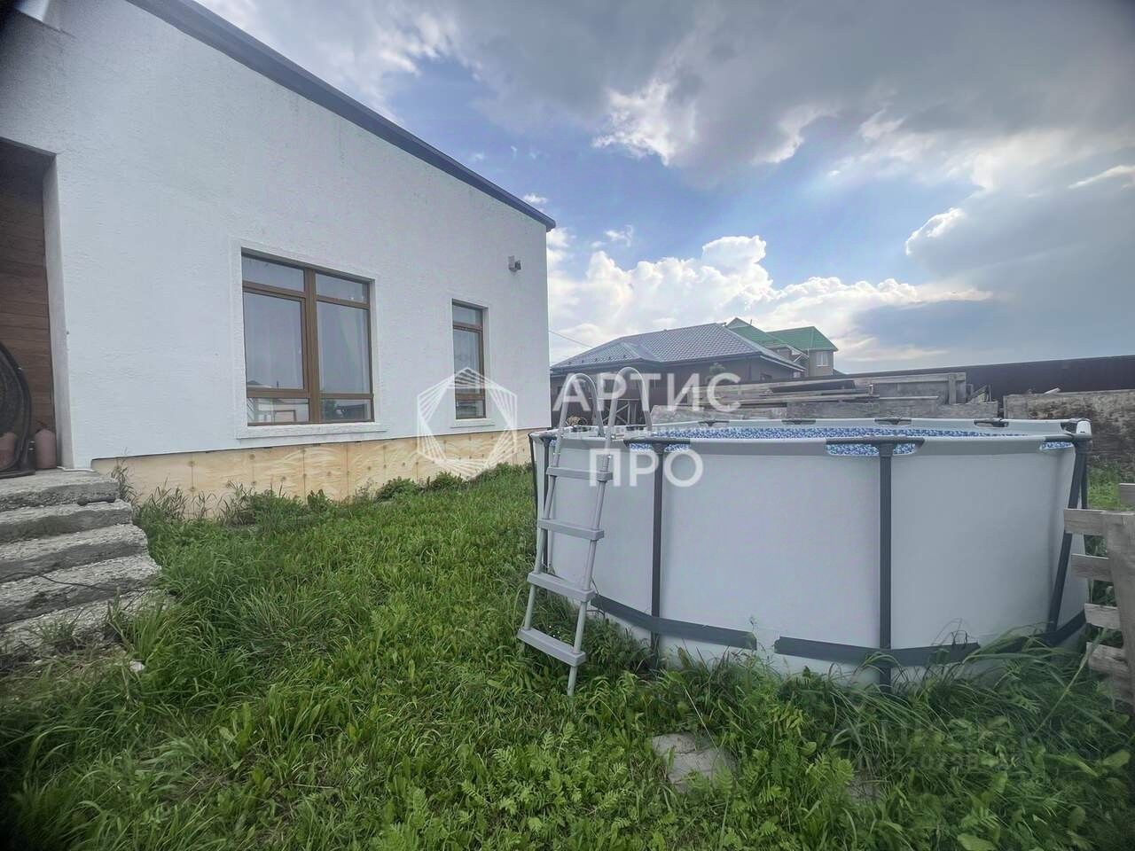 Участок правильной формы, огорожен забором, есть ворота и калитка. На участке есть бассейн, беседка, летняя кухня.