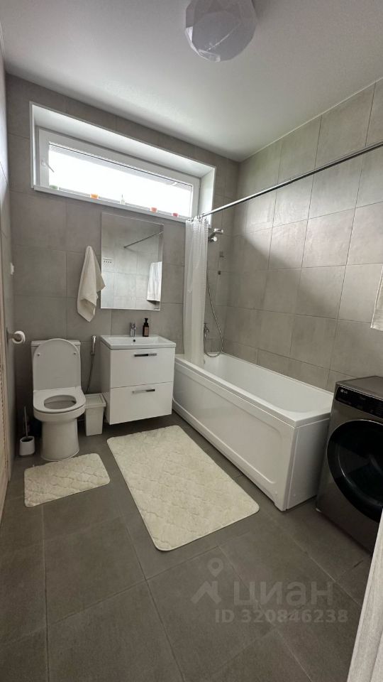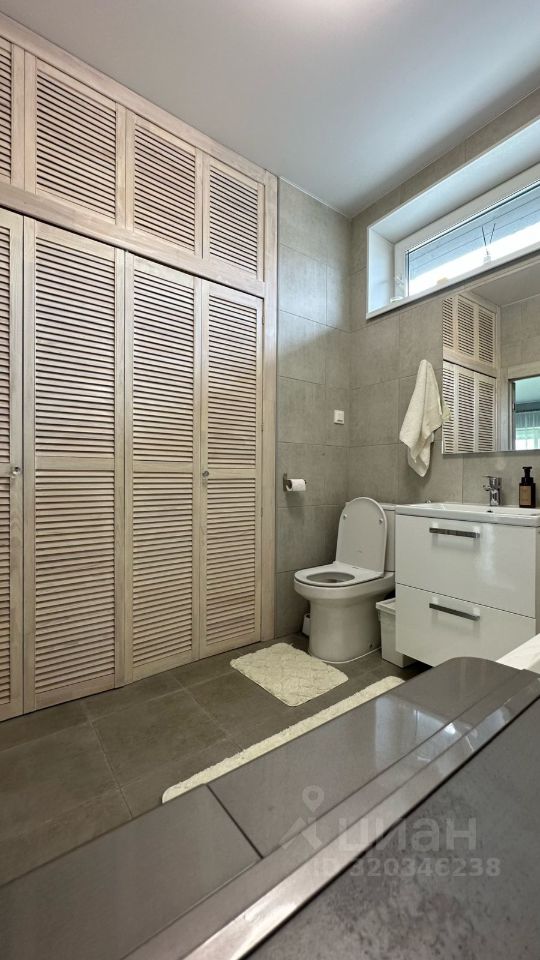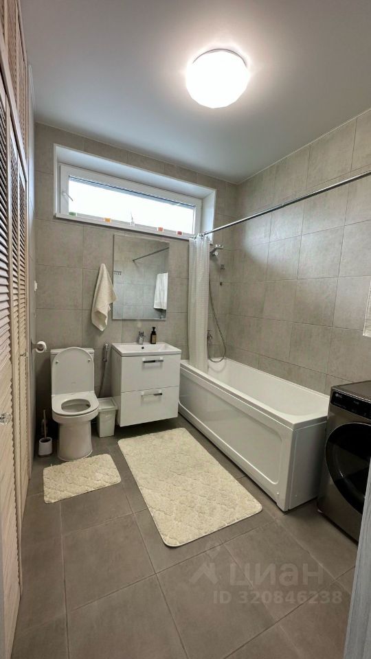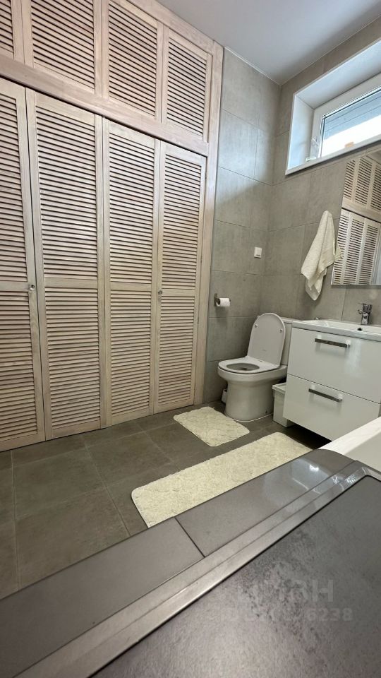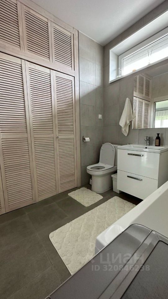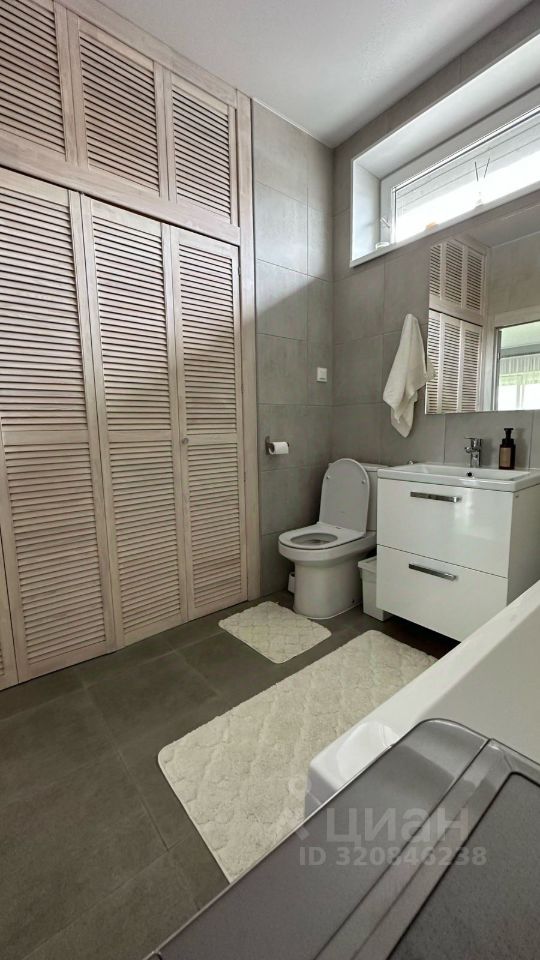 В ванной установлена качественная сантехника: унитаз Jacob Delafon Elit, подвесная тумба Cersanit, зеркало Акватек, ванна 170см Aquaton, смесители и гигиенический душ Grohe. В ванной зонирована зона котельной раздвижными дверями, за ними установлен котел, водонагреватель на 80л и 3х этапная система очистки воды и система хранения.