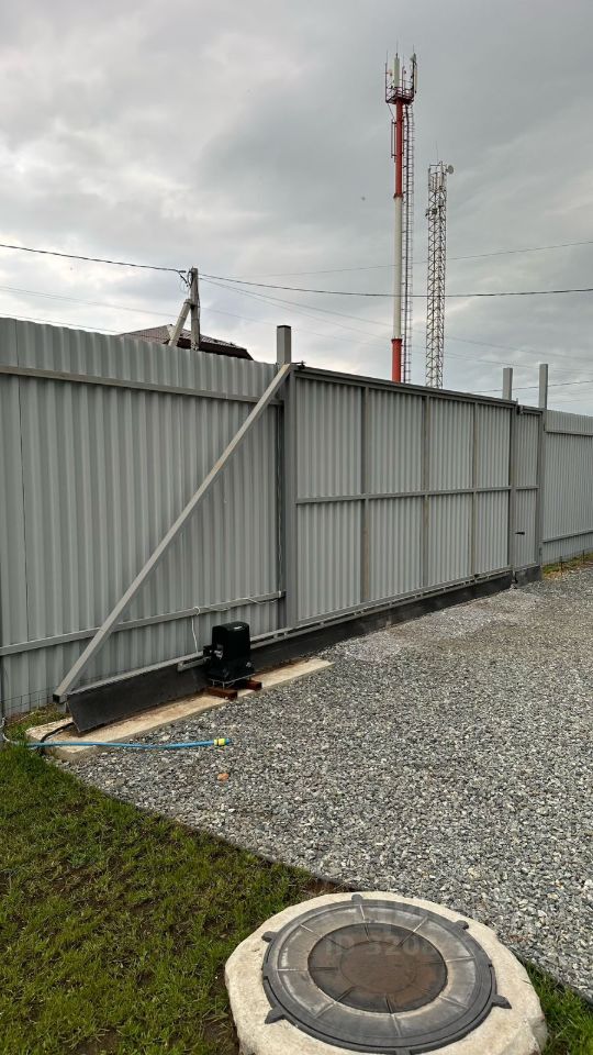 Забор на все 4 стороны красивой стороной во двор - профлист, фасад забора цветной профлист и откатные ворота Doorhan с пультом.