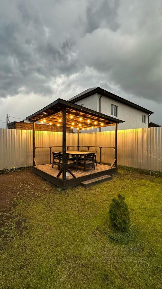 Беседка во дворе 3*3 м с освещением и сделано основательное место под каркасный бассейн (с подушкой из щебня и утеплителем 50мм) и установлен бассейн. По всему участку освещение, на доме фонарики. Выведены 2 точки водоснабжения на участок (за домом и перед домой для автомойки)
