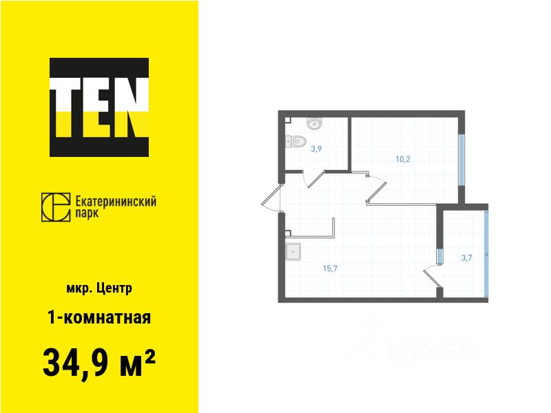 Общая площадь34,9 м2