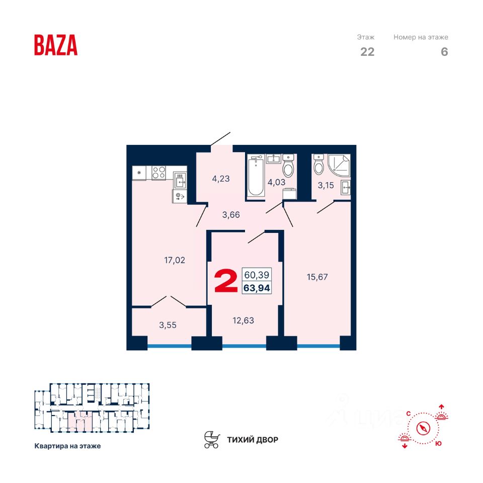 Общая площадь63,94 м2