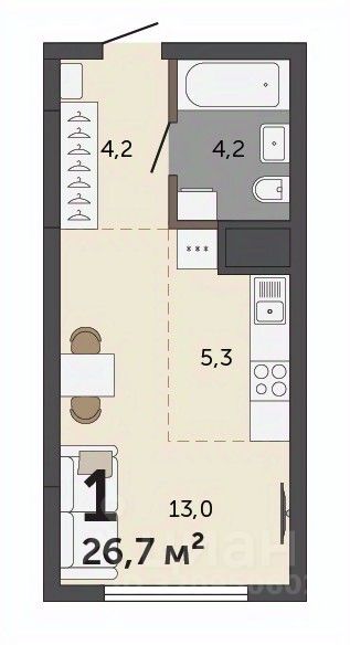 Продаётся студия в строящемся доме (1 этап), срок сдачи: IV-кв. 2026, общей площадью 26.7 кв.м., на 3 этаже. Новый жилой комплекс ''Шарташ Парк'' от Специализированного застройщика ''Шарташ Парк'' расположен в Кировском районе Екатеринбурга на ул. Блюхера.
