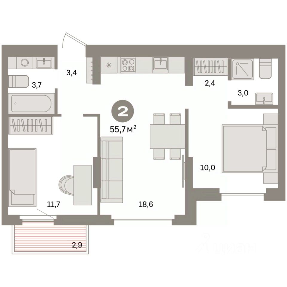 Квартира с кухней-гостиной и одной спальней в квартале ''Депо''. Особенности планировки: второй санузел, гардеробная, разнесённые спальни, предчистовая отделка, мастер-спальня, балкон. квартиры в нашей базе: ДЕП04-Ж6.5.2.