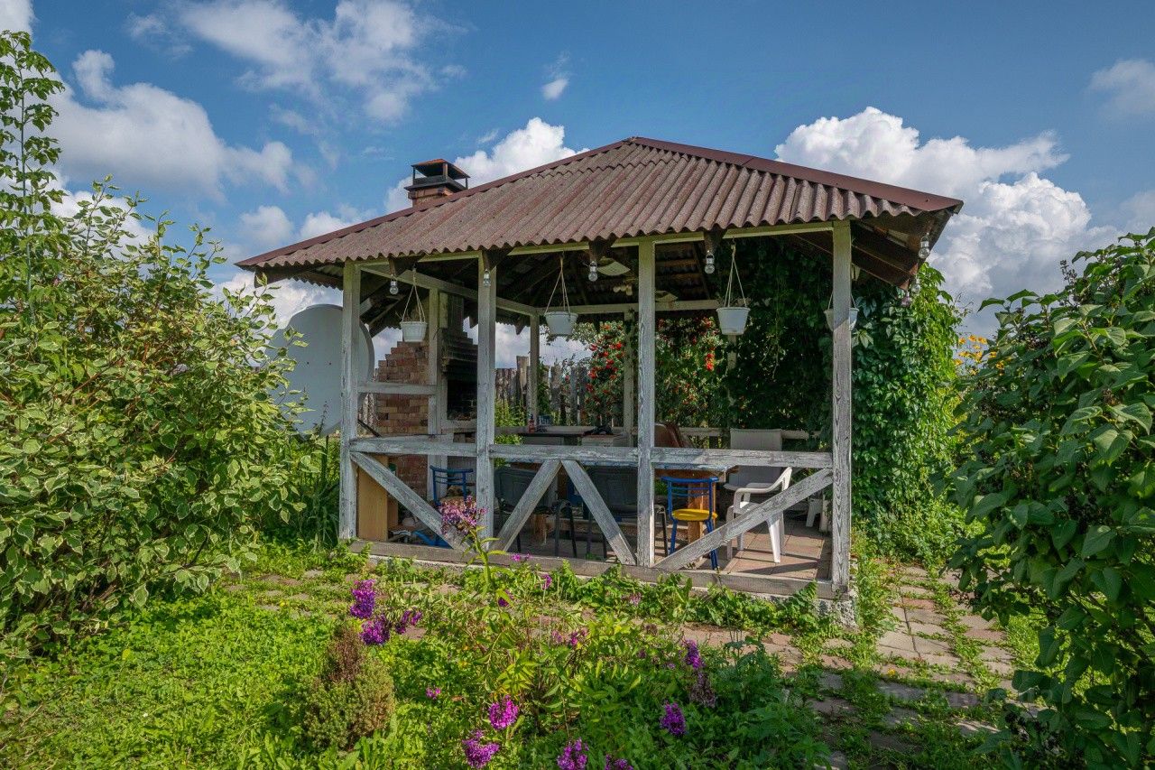 На участке в 16 соток расположился добротный двухэтажный дом, гараж с подвалом, просторная беседка, оборудованная кухней и мангальной зоной, теплица с площадкой под птичник, много ягодных кустов и плодовых деревьев.