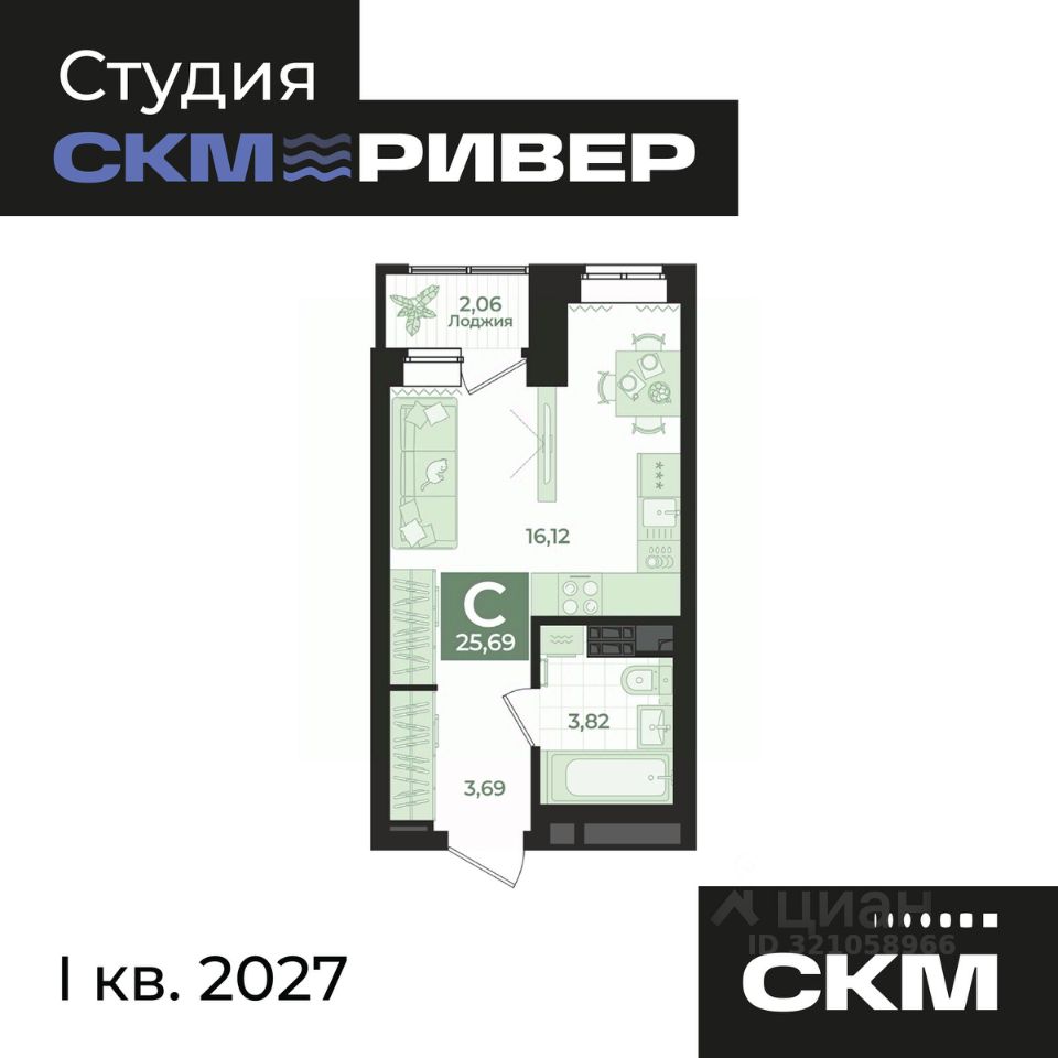 Продаётся студия в строящемся доме (1 очередь), срок сдачи: I-кв. 2027, общей площадью 25.69 кв.м., на 3 этаже. Новый жилой комплекс ''СКМ Ривер'' от застройщика ''СКМ Двелопмент'' расположен по адресу: г. Екатеринбург, улица Щербакова.