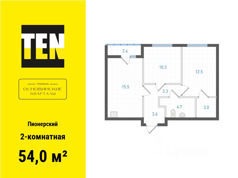 Квартира в ЖК ''ОК: Премиум'' в Пионерском микрорайоне от застройщика TEN девелопмент! Ключи во 2 квартале 2027 года. ЖК ''ОК: Премиум'' - это продолжение квартала, украсившего локацию Основинского парка, включающего 5 домов высотой от 14 до 31 этажей. Спокойный архитектурный облик, классические линии и формы, гармоничное сочетание цветовых решений все подчеркивает респектабельный характер второй очереди жилого комплекса ''Основинские кварталы''. Вдохновение природой Здесь не просто ландшафтное озеленение, а целые коллекции цветов и деревьев - различные сорта яблонь, сирени, гортензий и других растений - настоящий питомник в собственном дворе! Двор закрыт от машин и посторонних, при этом учтены интересы всех жителей как маленьких, так и взрослых. Разнообразные динамичные площадки для игр, ворк-аут зоны, амфитеатр, площадка для йоги не только созерцать, но и наслаждаться активным отдыхом! Контроль доступа, видеонаблюдение и круглосуточная охрана обеспечат безопасность для себя и близких. Спокойствие и респектабельность Входные группы прозрачные и расположены на уровне тротуара, чтобы было удобно завозить коляску или велосипед. Дизайн холлов выполнен в классическом выдержанном стиле. Для удобства жителей здесь есть мягкие зоны, колясочная и лапомойка, для автолюбителей - подземный паркинг. Свобода без ограничений Разнообразие планировочных решений позволит воплотить любые идеи и желания: насладиться видами с собственной террасы, обустроить второй уровень с потолком под 3,5 м, реализовать самые смелые дизайнерские решения. Отделка под чистовую. В санузле — монолитный потолок, на полу — гидроизоляция и стяжка, стены оштукатурены. В одном санузле установлены унитаз и раковина. В остальных помещениях потолок — монолит, на полу — стяжка, стены оштукатурены.
