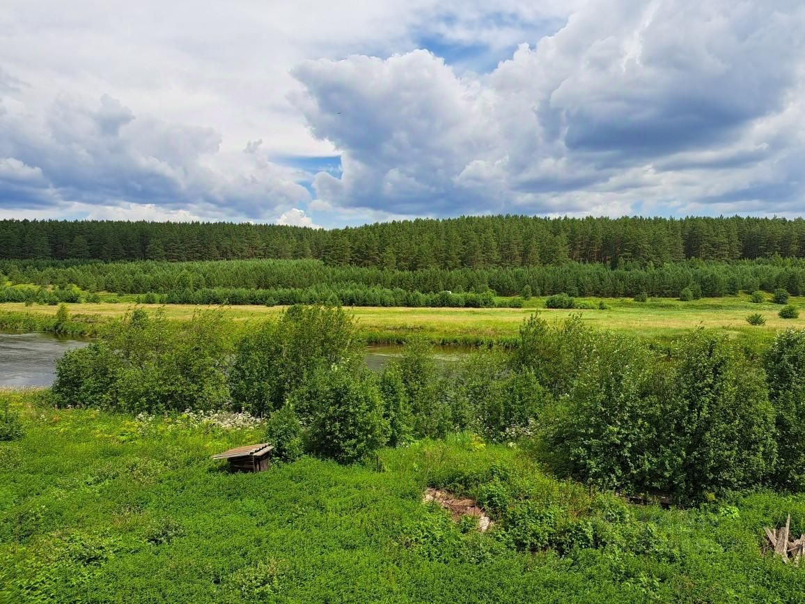Дом расположен в живописнейшем месте у реки Исеть. Вид из окна смотрите на фото. Дом стоит на горке. Участок с плодородной почвой - ровный. 13 соток по границе. Реально до реки гораздо больше соток.