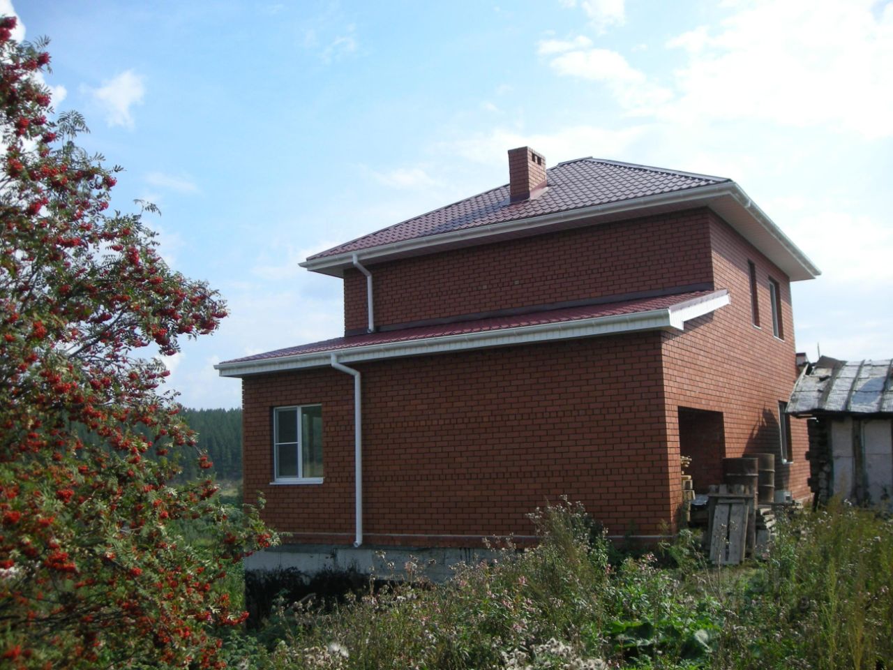 Кровля - металлочерепица. Потолок второго этажа утеплен минеральной ватой 20 см .