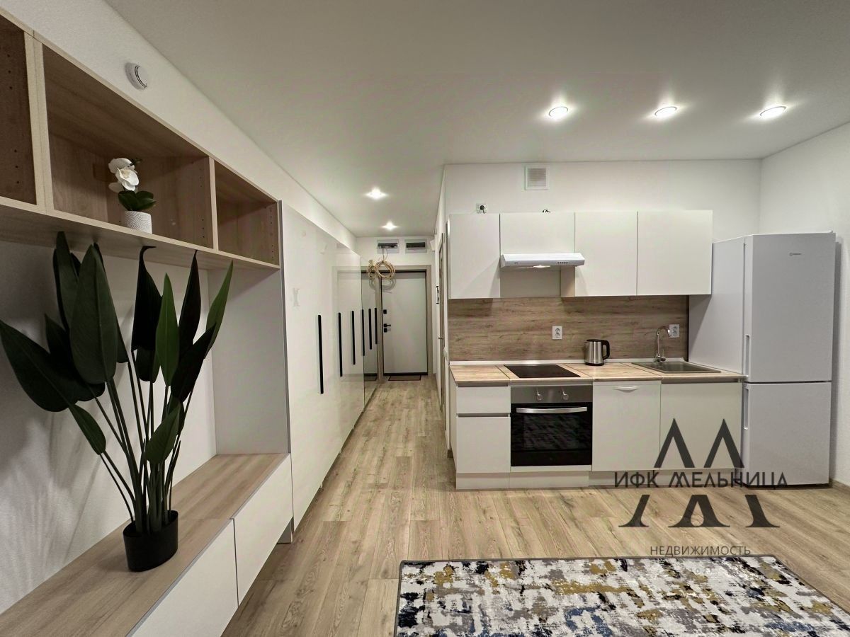 Установлена новая мебель и бытовая техника: - Индукционная варочная поверхность, - электродуховка, - микроволновая печь, - посудомойка, - стиральная машина, - двухкамерный холодильник, - вытяжка, - ТВ, - большая гардеробная для хранения одежды, - диван кровать, - обеденная зона с мягкими стульями, - декор, - ковры на полу.