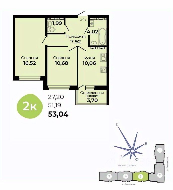 Общая площадь53,04 м2