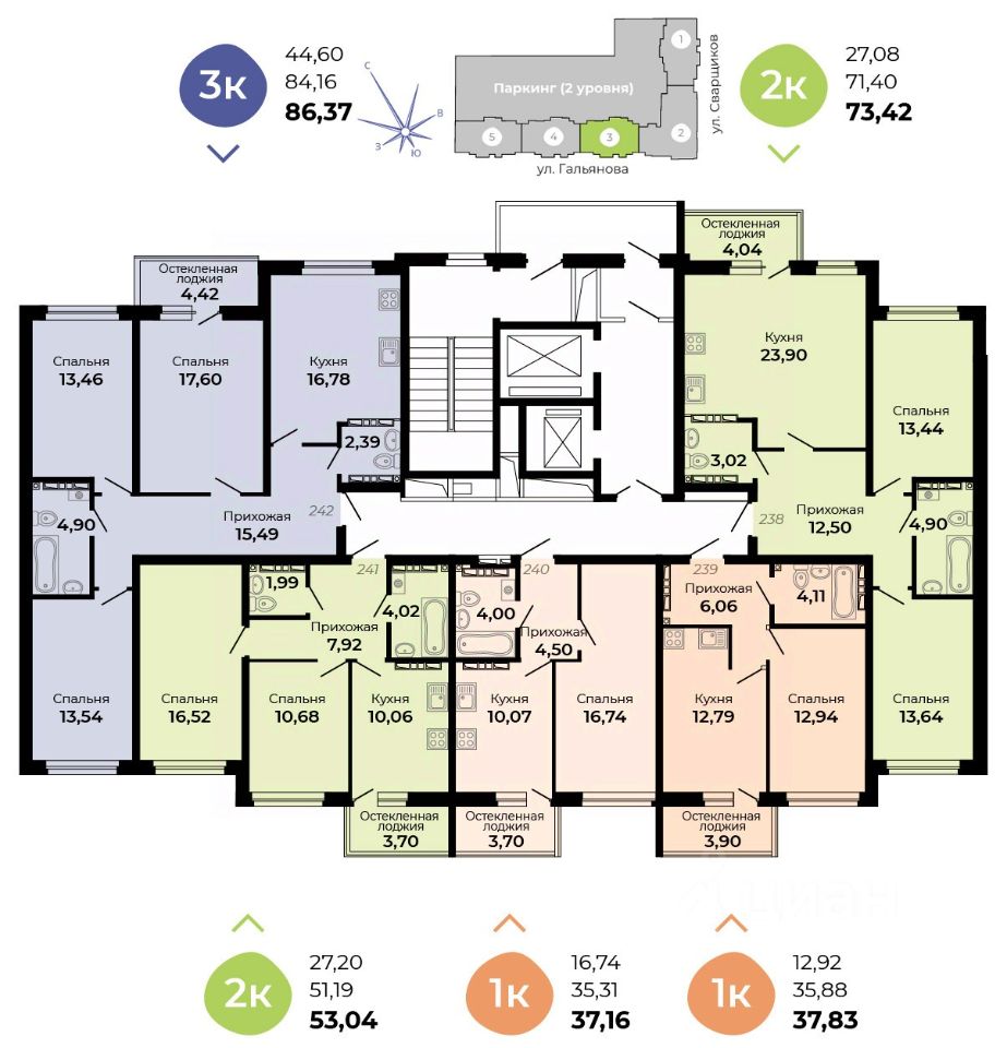 Архитектурная концепция —удобная и продуманная жизнь! Улучшенные планировки, большой просторный двухуровневый паркинг, кладовые!